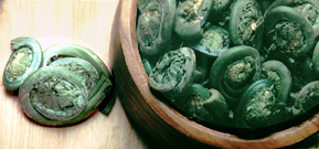 Fiddlehead ferns are easily collected on the trail and make a delectable dish in camp at night, or at home. They are readily sautéed with a little garlic and butter.