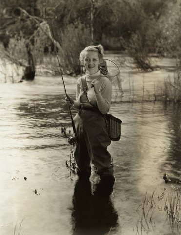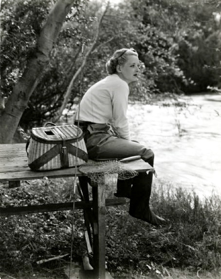 Bette Davis in waders – who could have imagined? Davis was the “The First Lady of the American Screen,” even referred to as the “Fifth Warner Brother,” according to her official site, but you’d be hard pressed to find her called a stream maven anywhere. And yet, here she is again, looking radiant, ready for a bout with big trout.