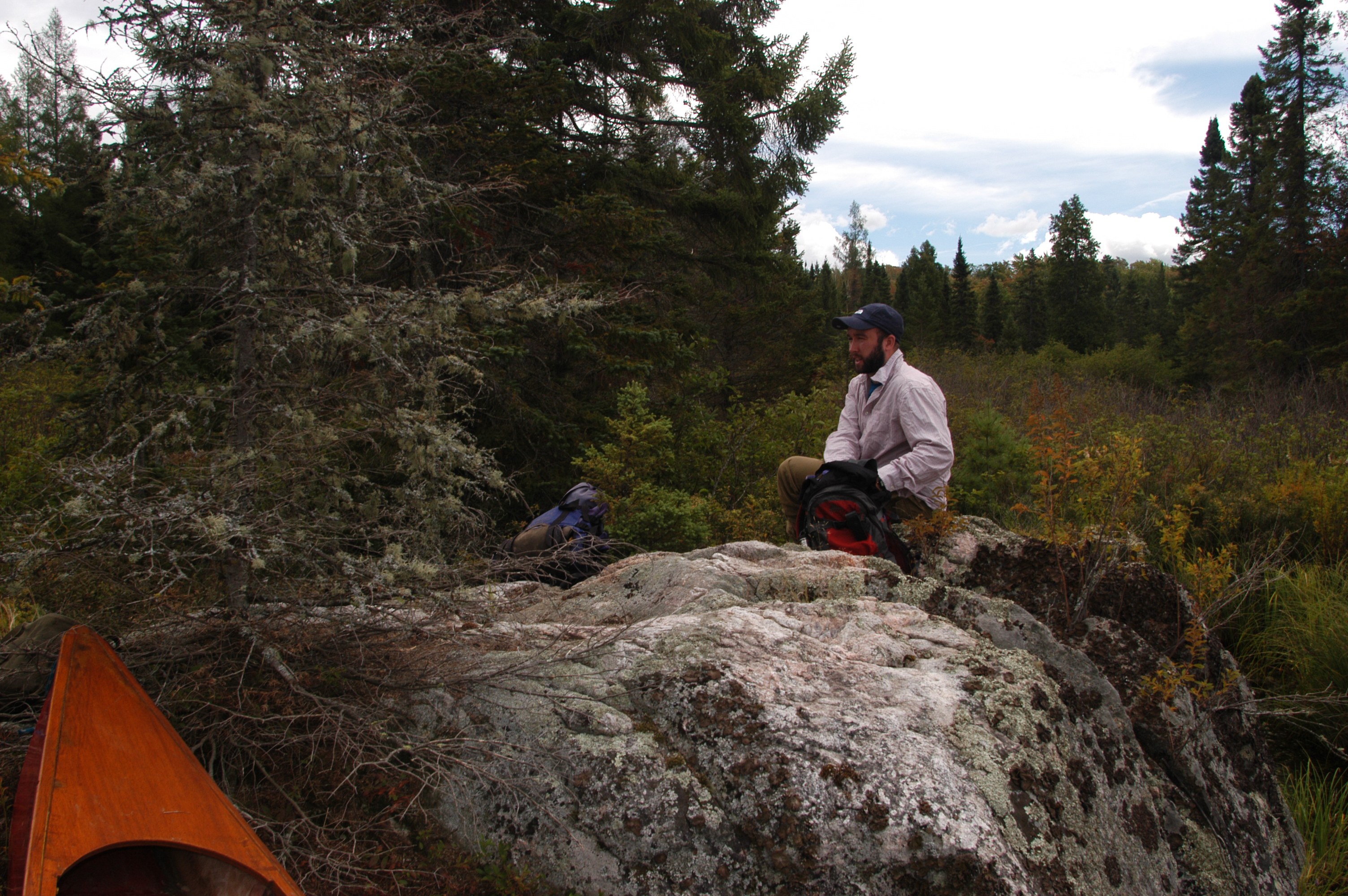 David settles in for lunch on a rock, one of the few dry spots we find along the river.