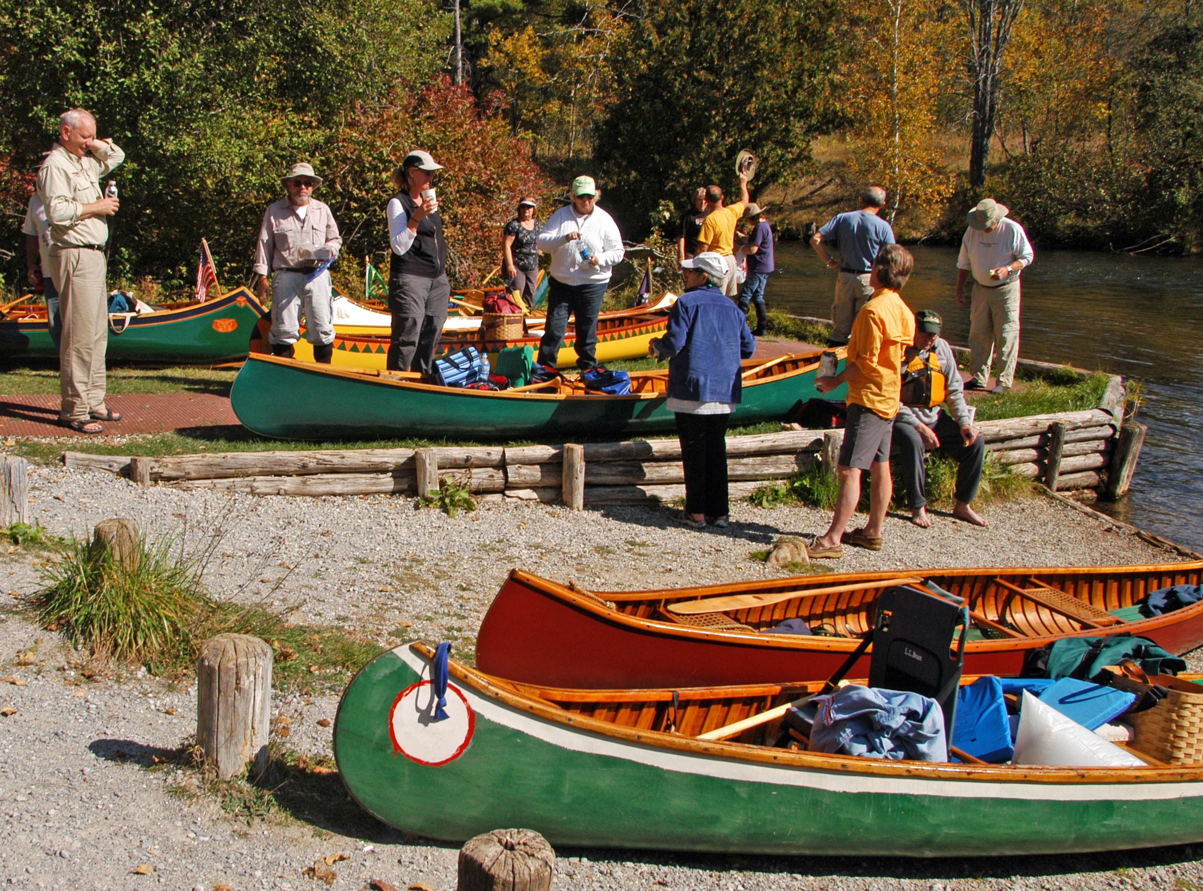 It was a quintessential fall day: cool and sunny with color in the trees, bold splashes of yellow and orange lining the banks of the AuSable River. What made it all the more colorful was company I was keeping and the canoes they paddled, each made of wood and rich in history.