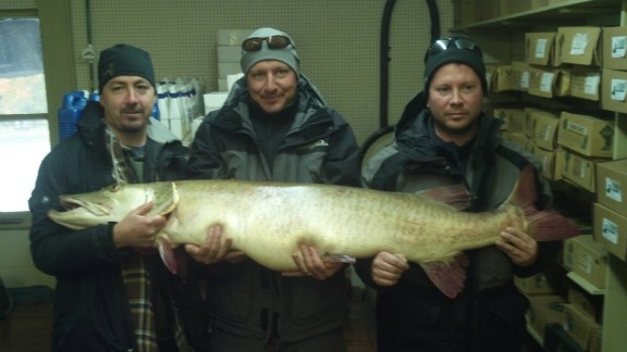 The fish was caught Saturday, Oct. 13, 2012 by Joseph Seeberger of Portage, Mich.. He was fishing Lake Bellaire in Antrim County with friends. Seeberger hooked the 58 pound, 59 inch long fish. It had a girth of 29 inches and took nearly two hours to land, requiring the help of friends.