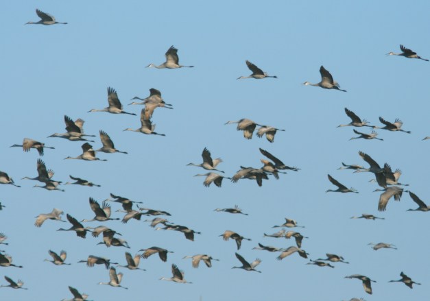 Sandhill Cranes flock aboive Michigan Audubon’s Haehnle Sanctuary where hunter dollars have helped conserve non-game birds like cranes. Photo by: Tom Hodgson