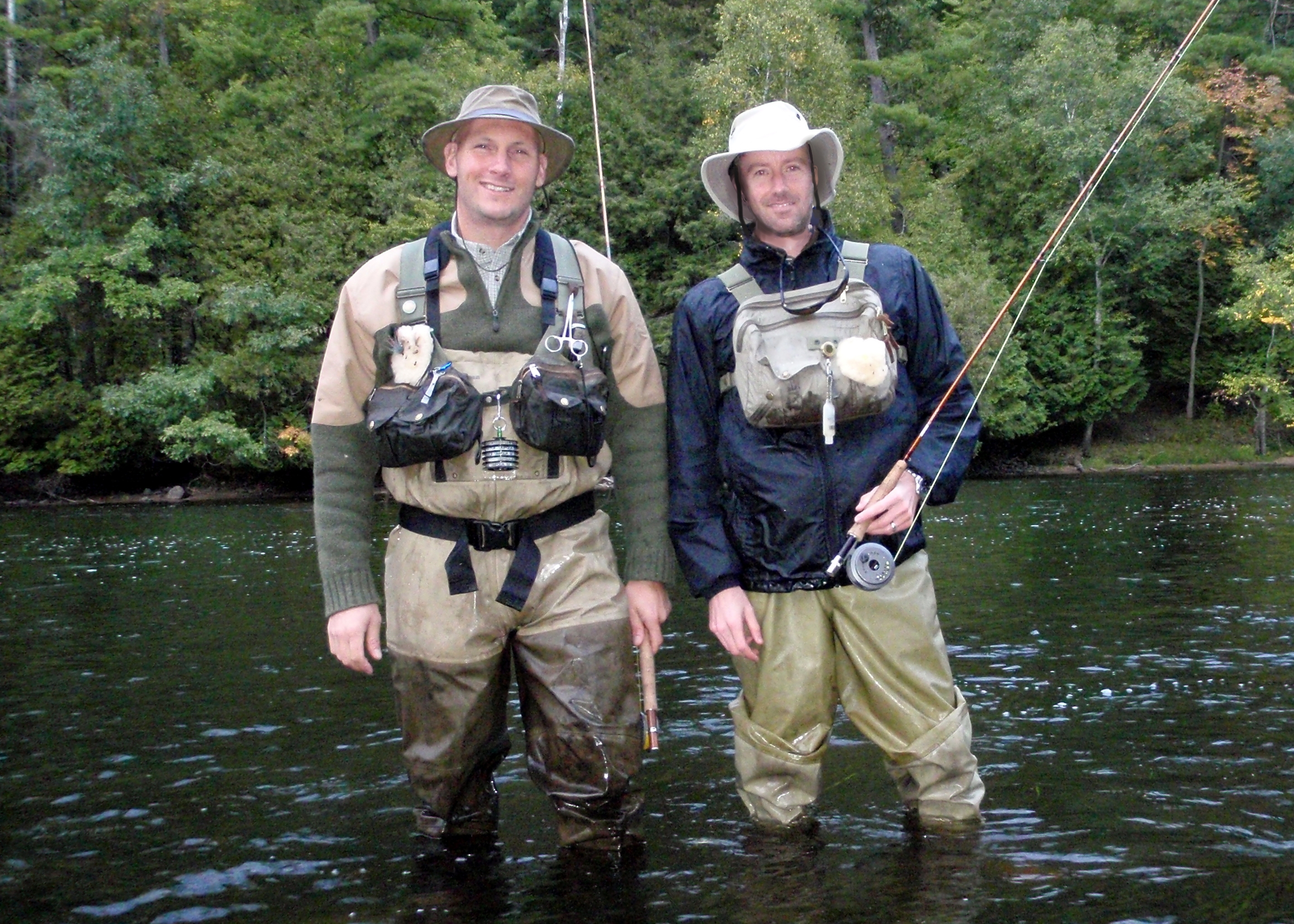 Jon Osborn and Joe VanFaasen, authors of Classic Michigan Flies stop while fishing the Muskegon River. Courtesy photo.