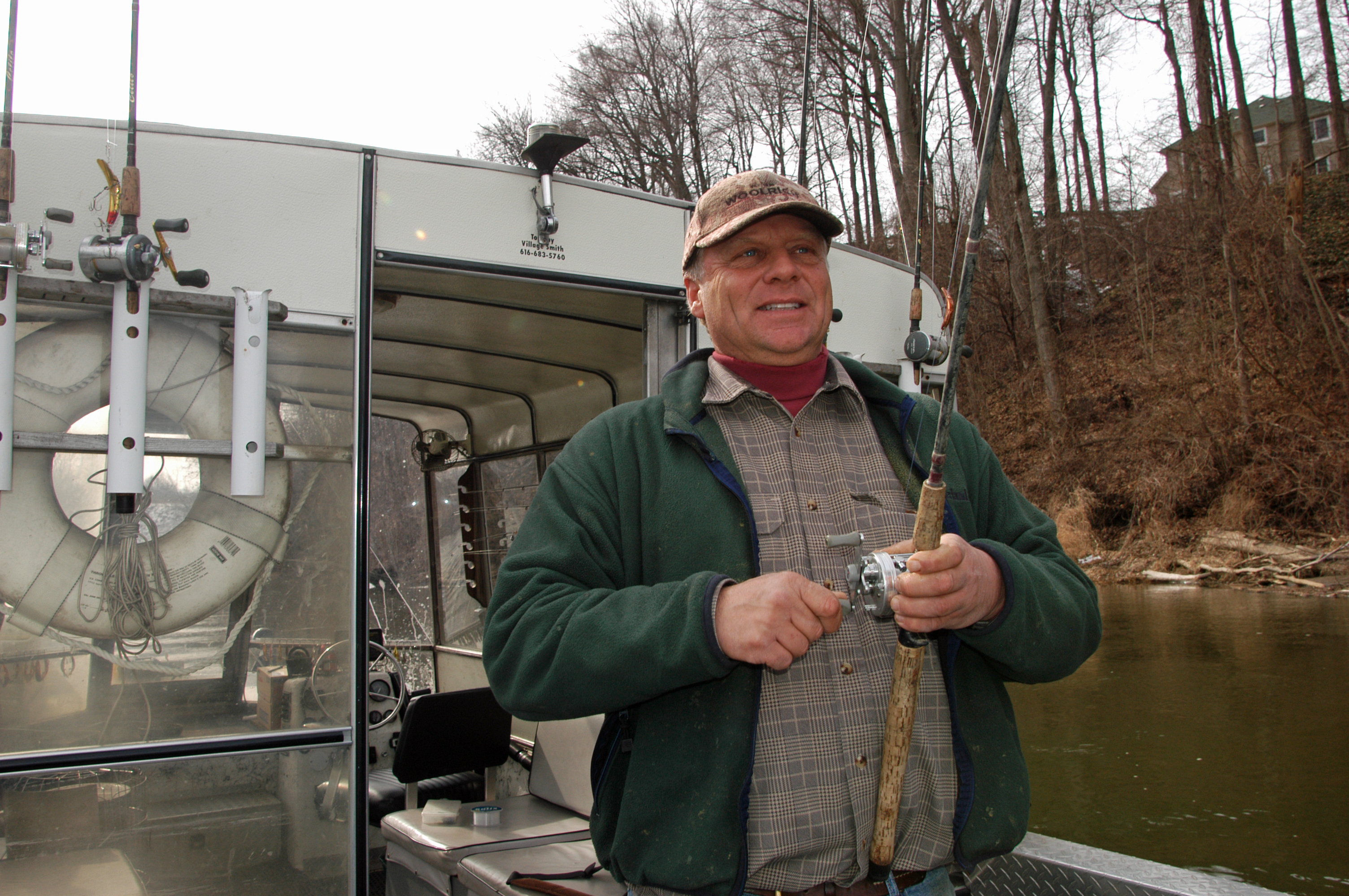 It was 1 p.m. when two of us, standing on the aft-deck of his covered Carolina Skiff, looked on as Clark reeled in a striking 8-pound steelhead that drew excited exclamations from everyone. The fish had hammered a chunk of spawn the size of a donut hole. We had been fishing since 7 a.m., hunting for winter steelhead on the St. Joseph River.