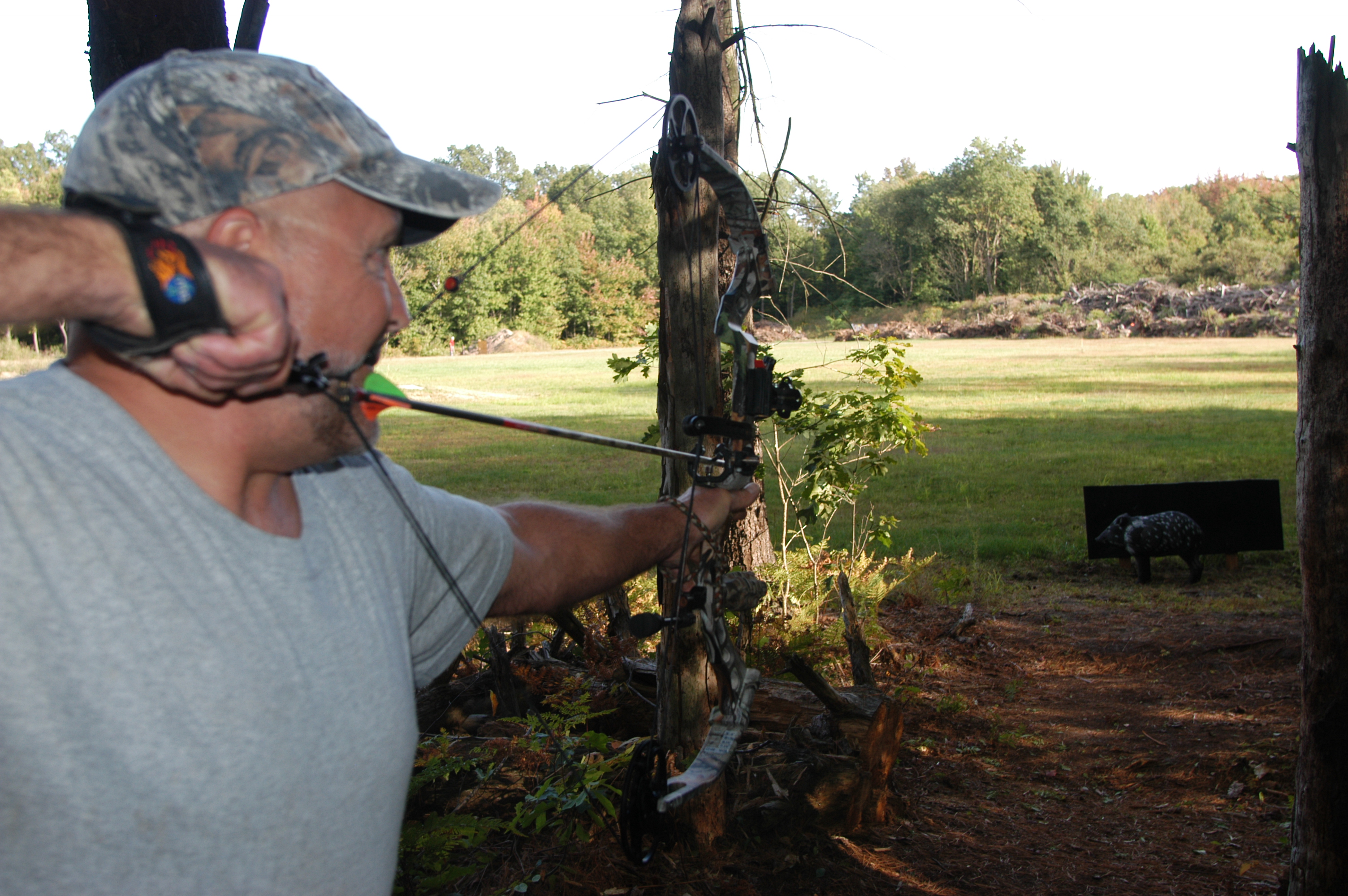 Mike Niva aims at a Javelina on the 3-D target range at Fruitport Conservation Club. Photo: Howard Meyerson