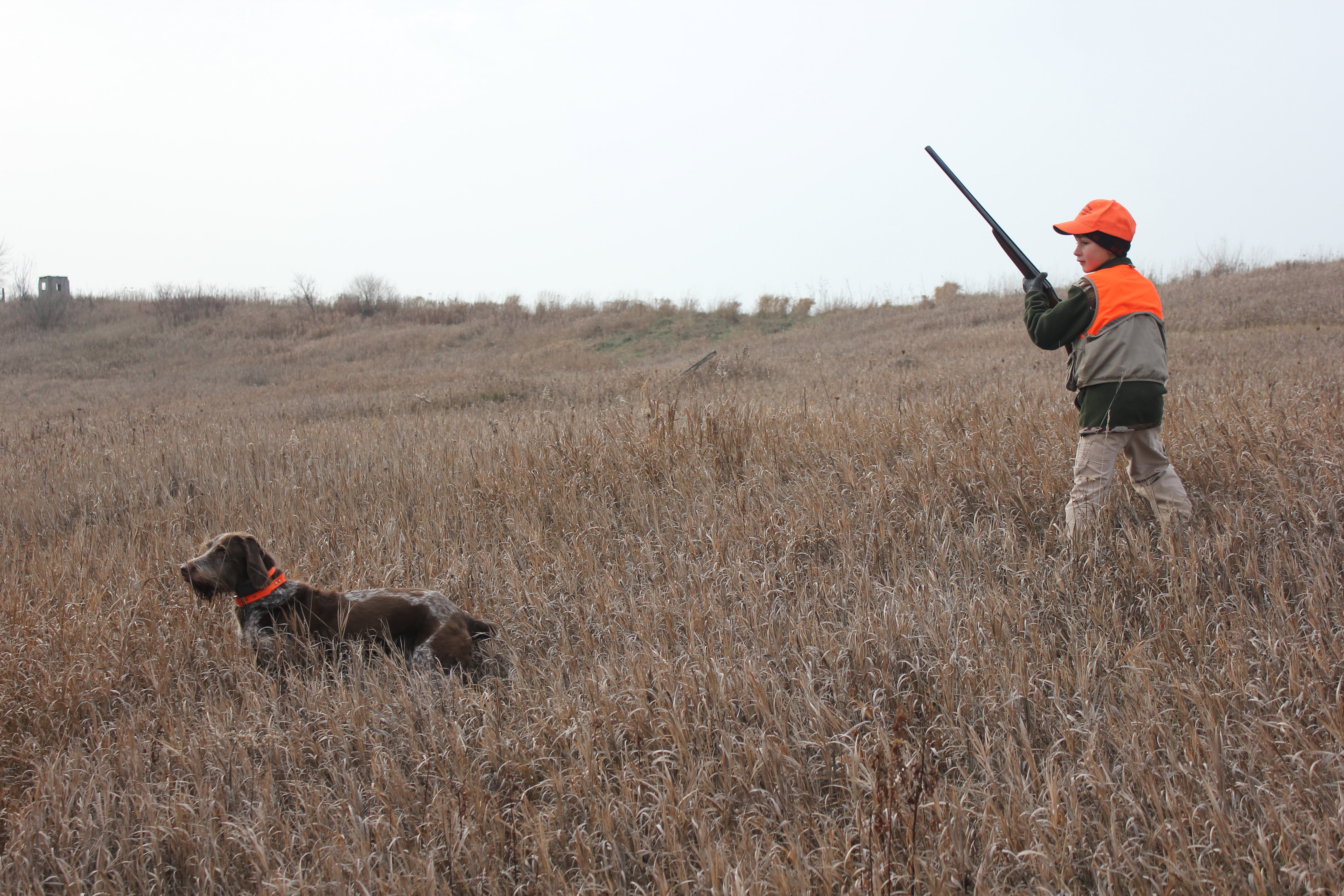 A young hunter (unnamed) looks for pheasant while hunting German wire-haired pointer named “Jake” durig a mentored youth hunt put on by the Muskegon County Pheasants Forever chapter earlier this year. Photo: Courtesy Muskegon County Pheasants Forever.