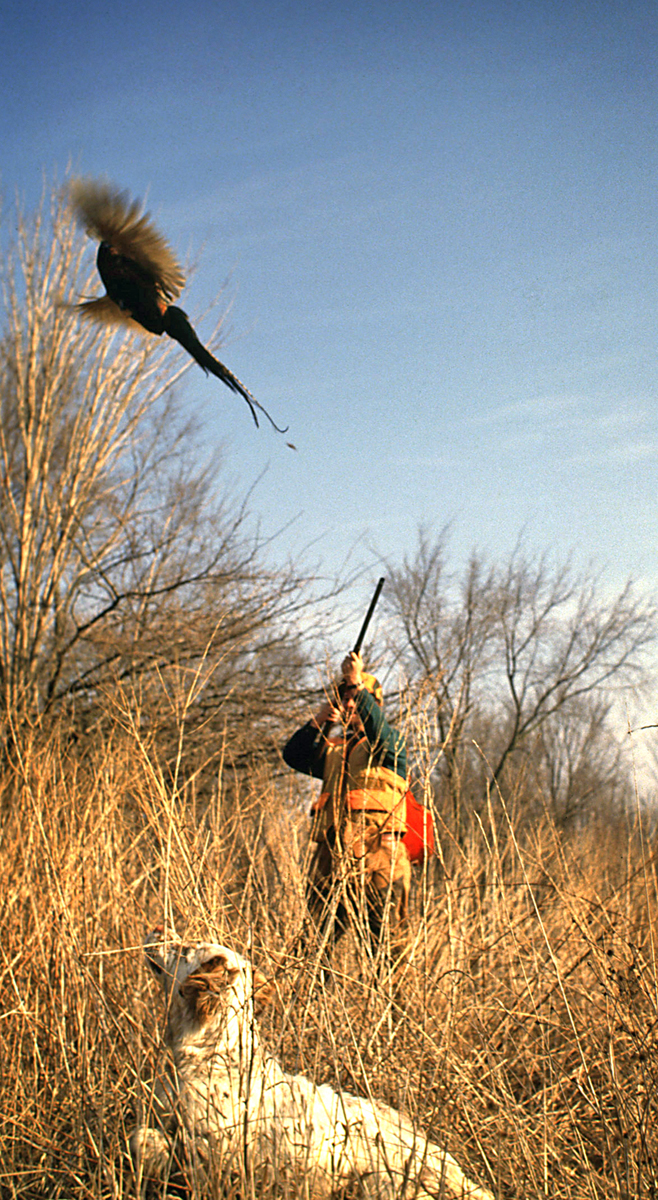 The joys of working a dog and flushing a rooster pheasant once drew 500,000 Michigan hunters to the field each fall. Photo: Dave Kenyon, Michigan DNR.