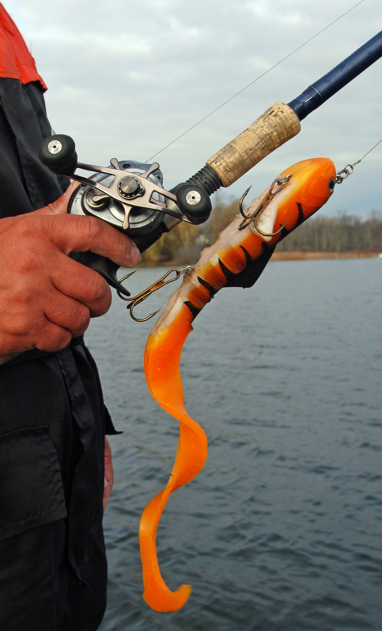 On the lake this day, the fishing had started slowly. Schultz and I burned up breakfast calories casting over-sized lures using heavy-action rods equipped with bait-casting reels and 80-pound test braided line. The water temperature was 39-degrees, cold enough to keep things slow.