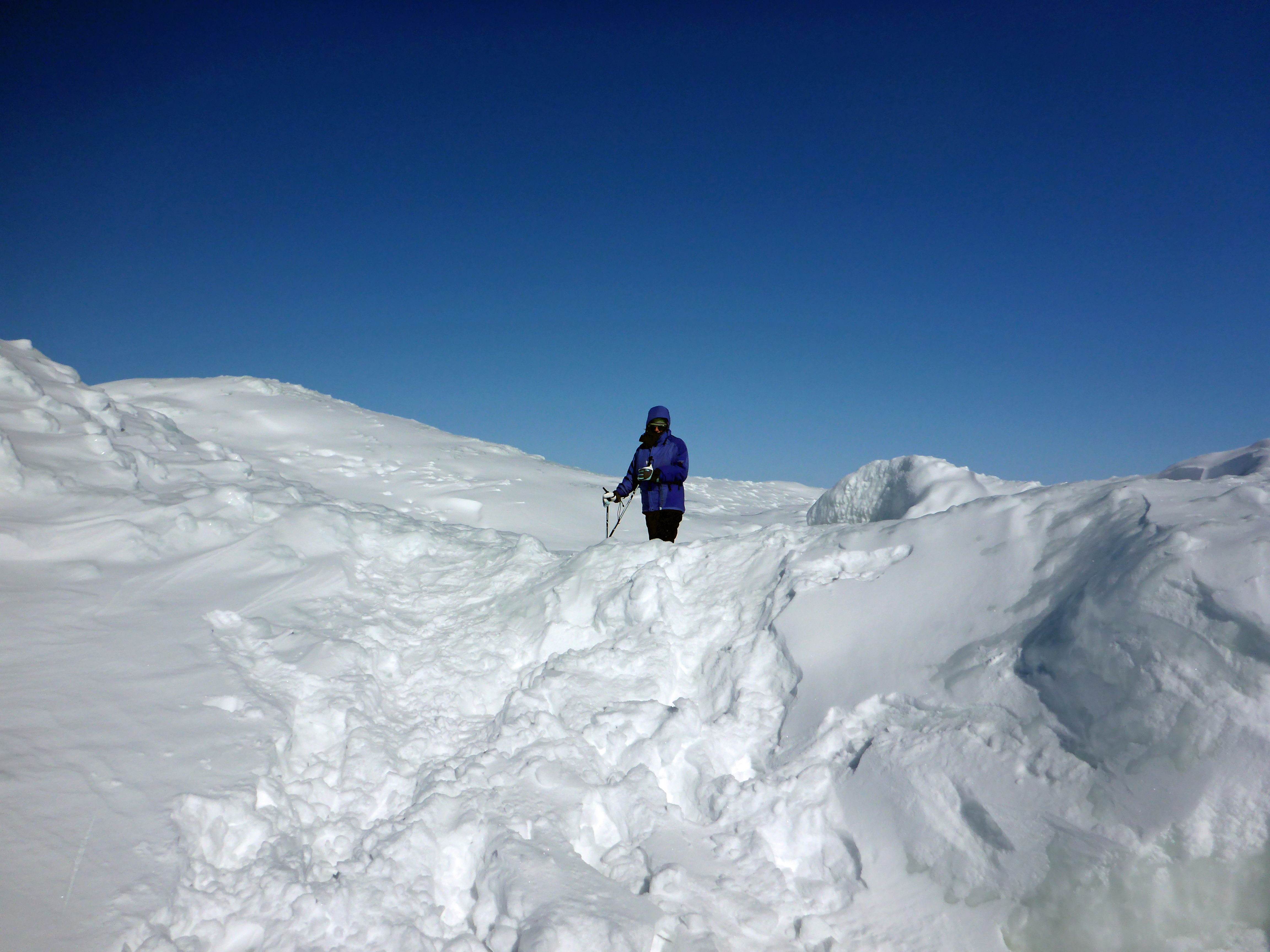 sheets of ice that lay stacked and broken into so many pieces of blue crystal covered in snow, I found myself mesmerized by the hauntingly beautiful terrain.