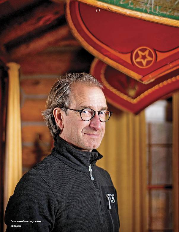 man who collects them, is the subject of a feature story by me in the newest issue of Canoeroots Magazine. It is called “The Canoe Collector.” The story profiles Ken Kelly, a Grand Rapids, Michigan wine dealer and Canoe Casanova, who has the world’s largest and finest collection of these magnificent wooden courting canoes.