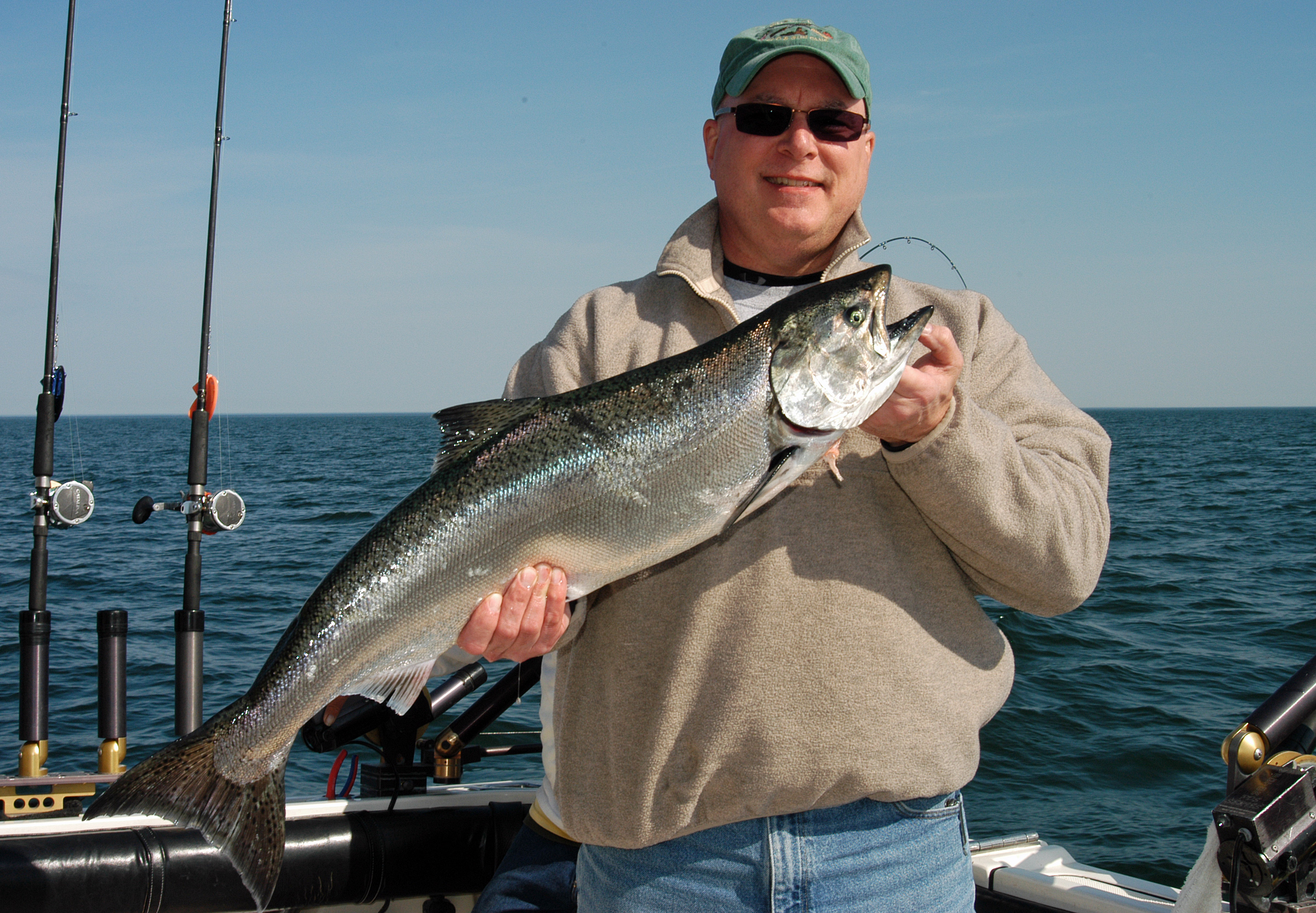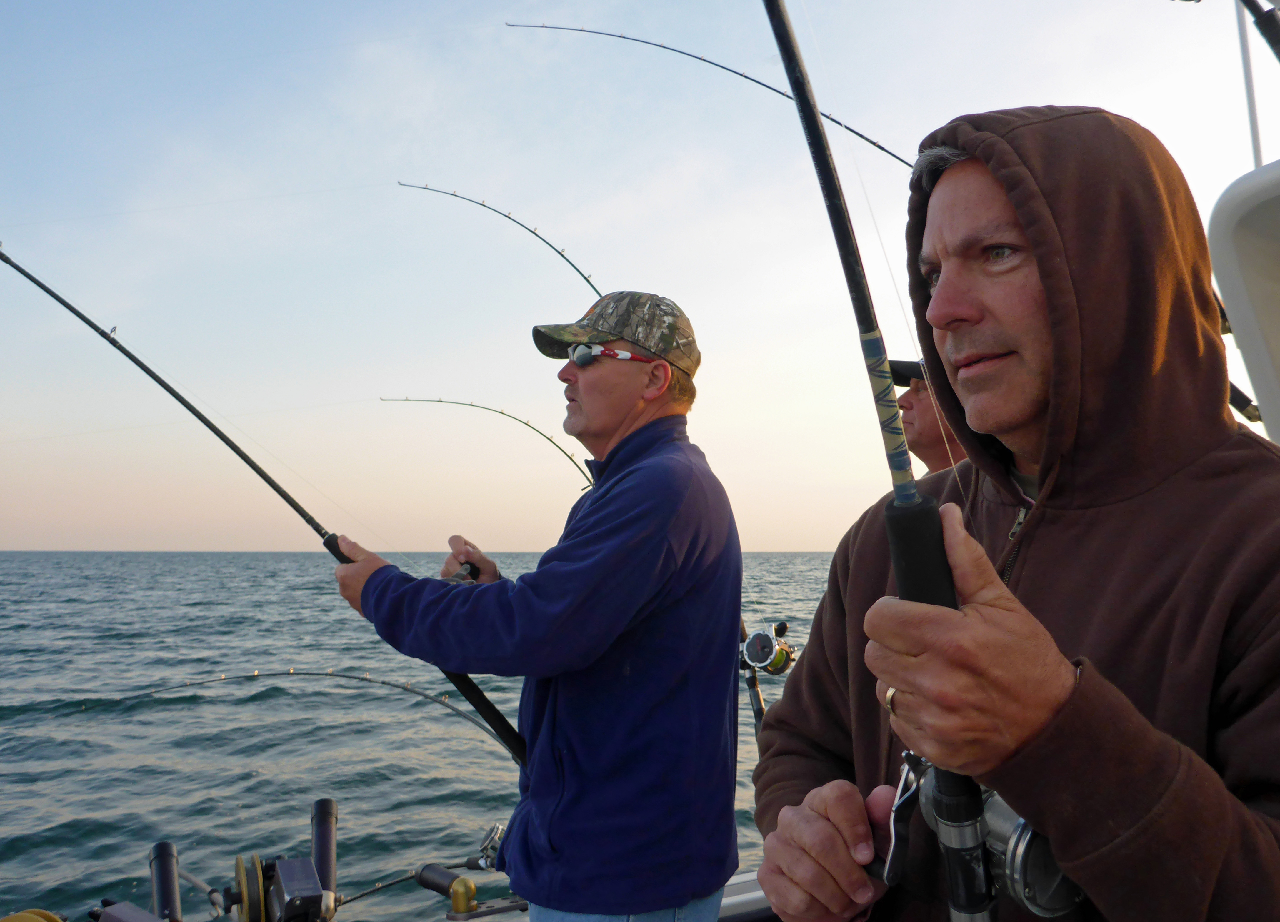 This cool, sunny day was proving an example of Lake Michigan salmon fishing at its best