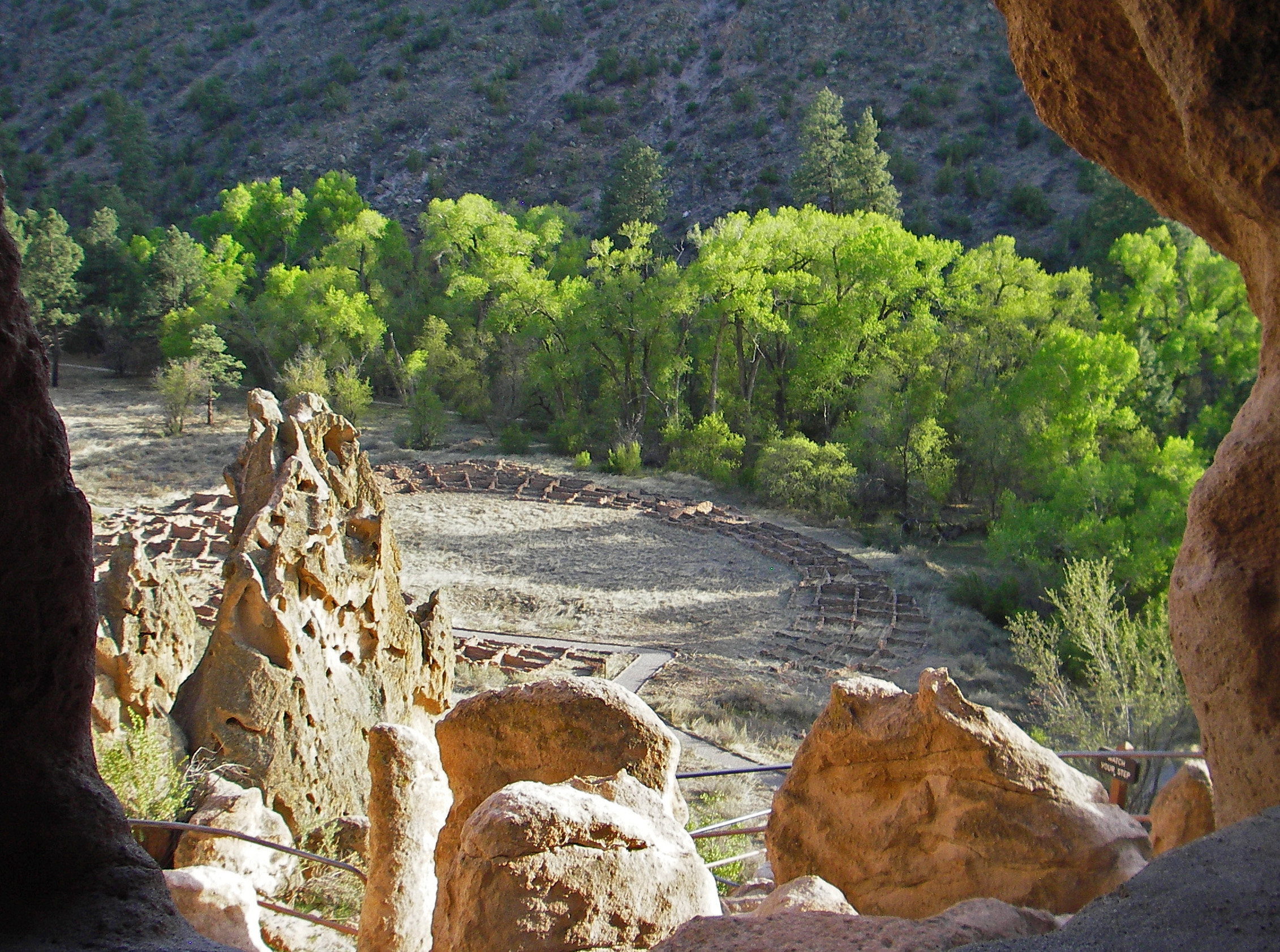 Looking out from one of the cliff dwellings at the remnants of the circular pueblo dwellings at New Mexico’s Bandelier National Monument. Photo: Howard Meyerson