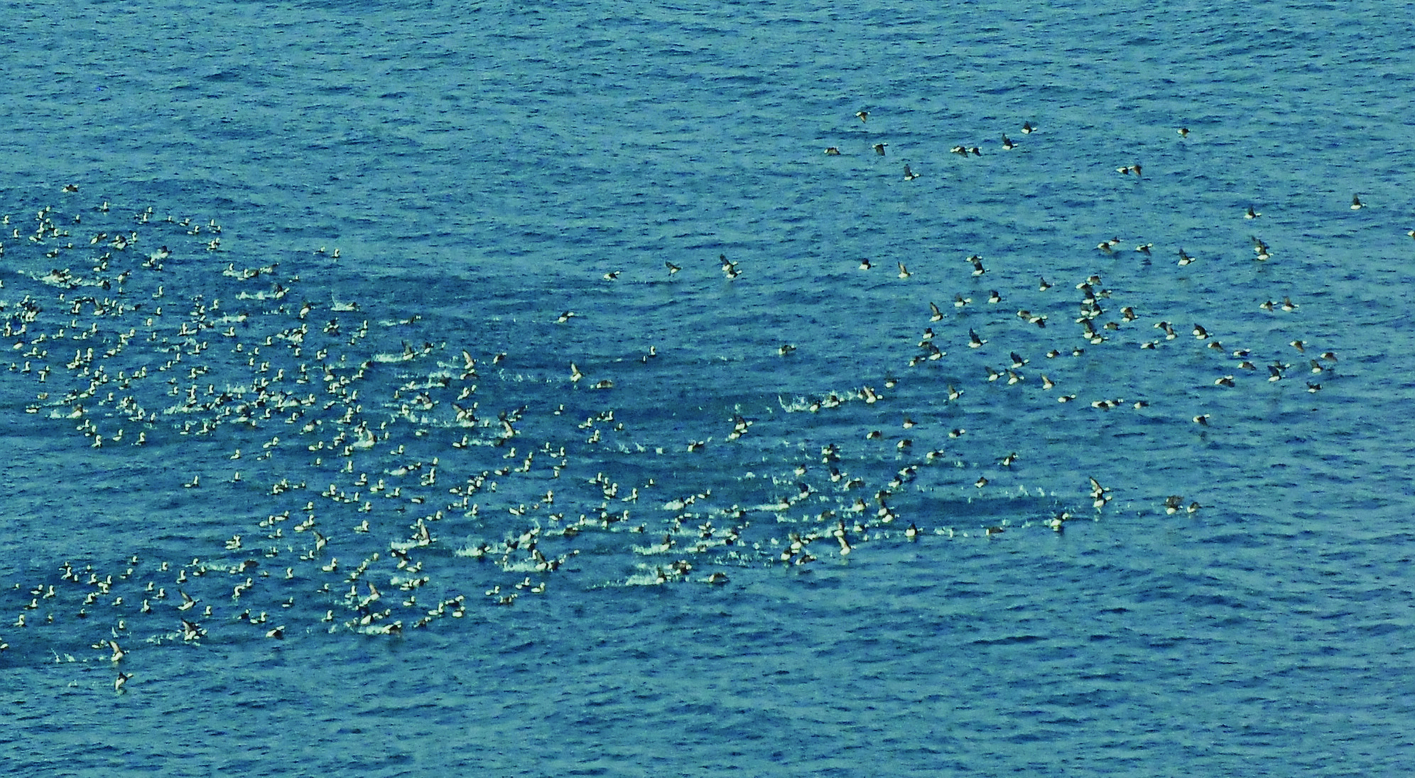 It’s not unusual for huge flocks of Long-tailed Ducks to alight on the lake with other waterfowl in fall, forming giant avian rafts a few miles offshore. Their presence has been observed at Douglas, Grand Haven, Muskegon, and elsewhere. Lake Michigan is a prime stopover site and a place to winter when climate conditions allow.
