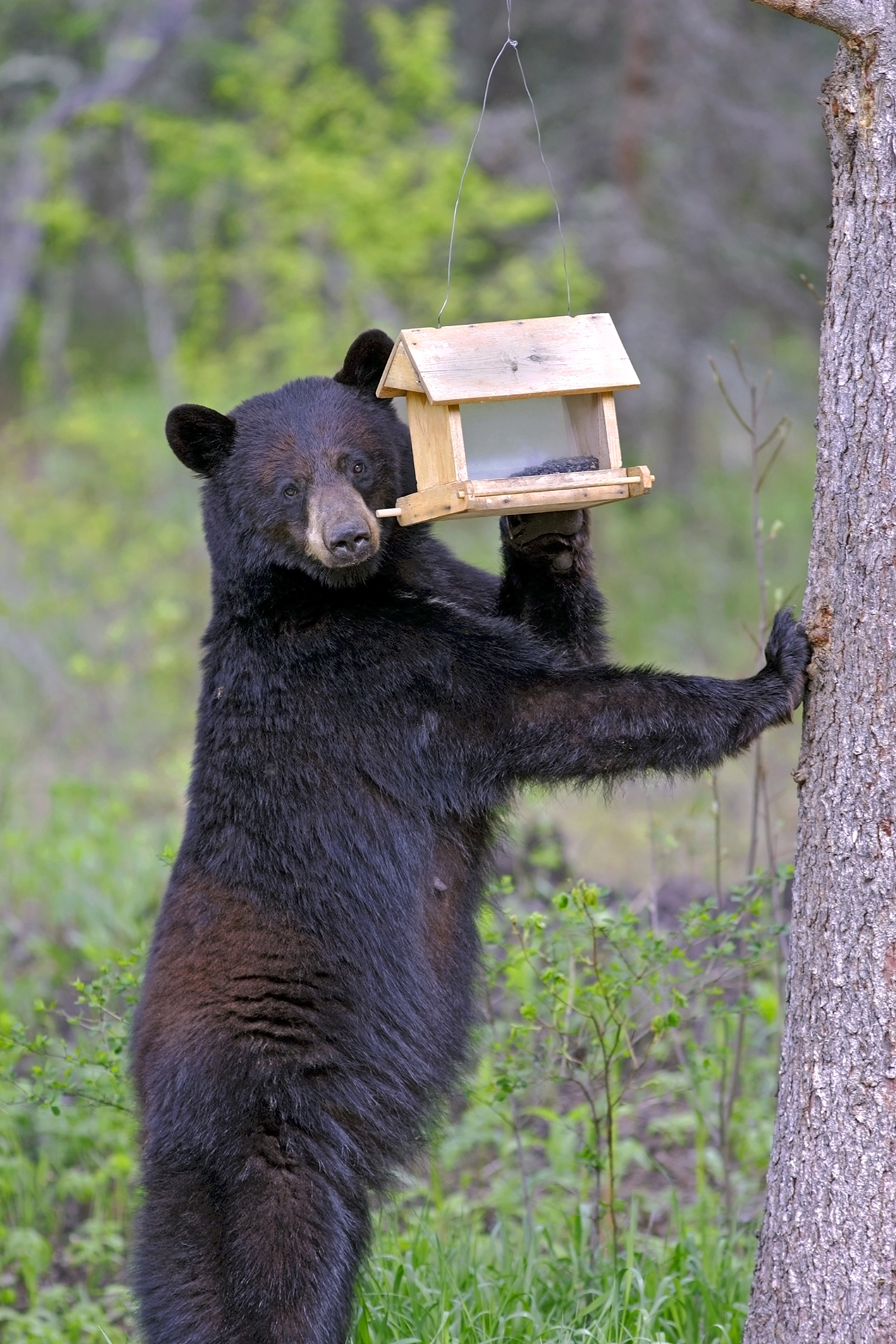 Natural foods such as nuts and acorns from oak, hickory, and hazelnut trees are rich in calories and help to build fat reserves. Bird feeders also make an especially appealing and accessible food source as bird feed is high in calories. Bears also may be attracted to grills with food debris or unsecured trash.