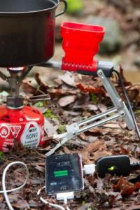 The FlameStower Thermo Charger, using your stove to charge your cell phone.
